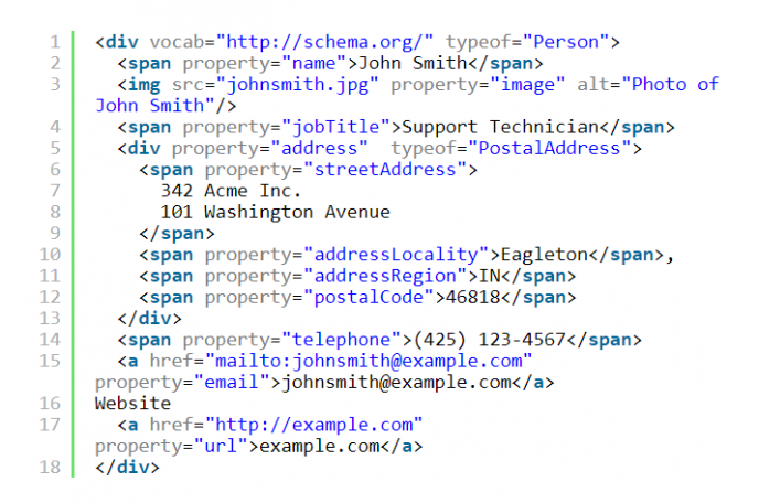Note the ‘property’ attribute inserted in the HTML tags. This is schema markup
