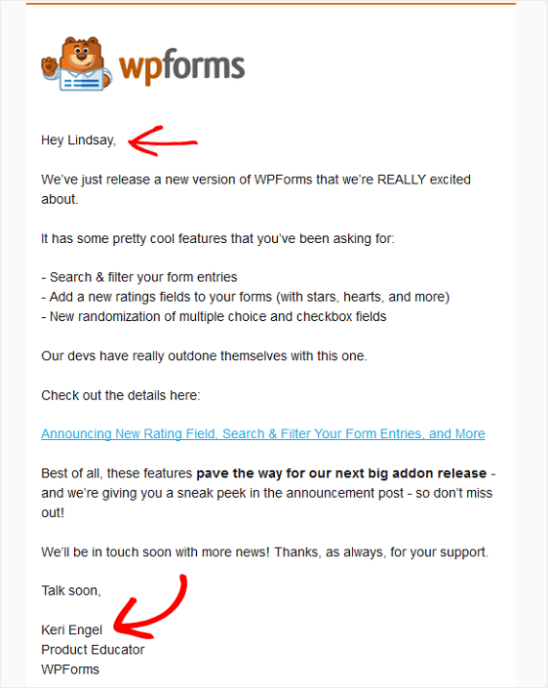 One of the most widely used personalisation tips is to use the first name of the recipient.